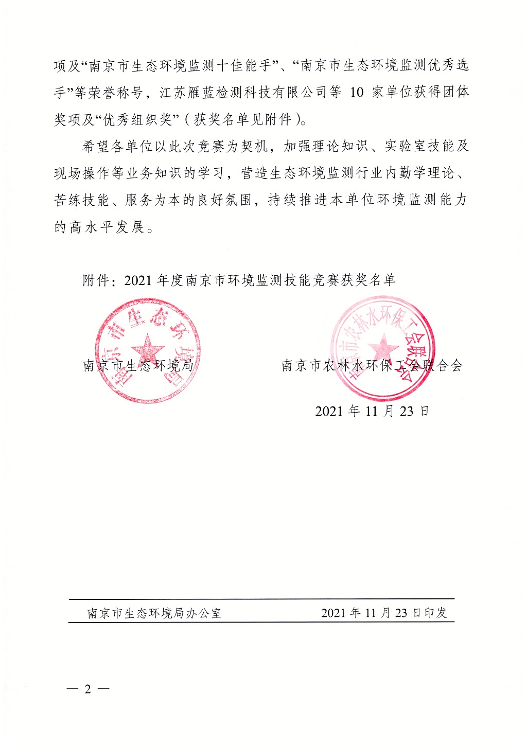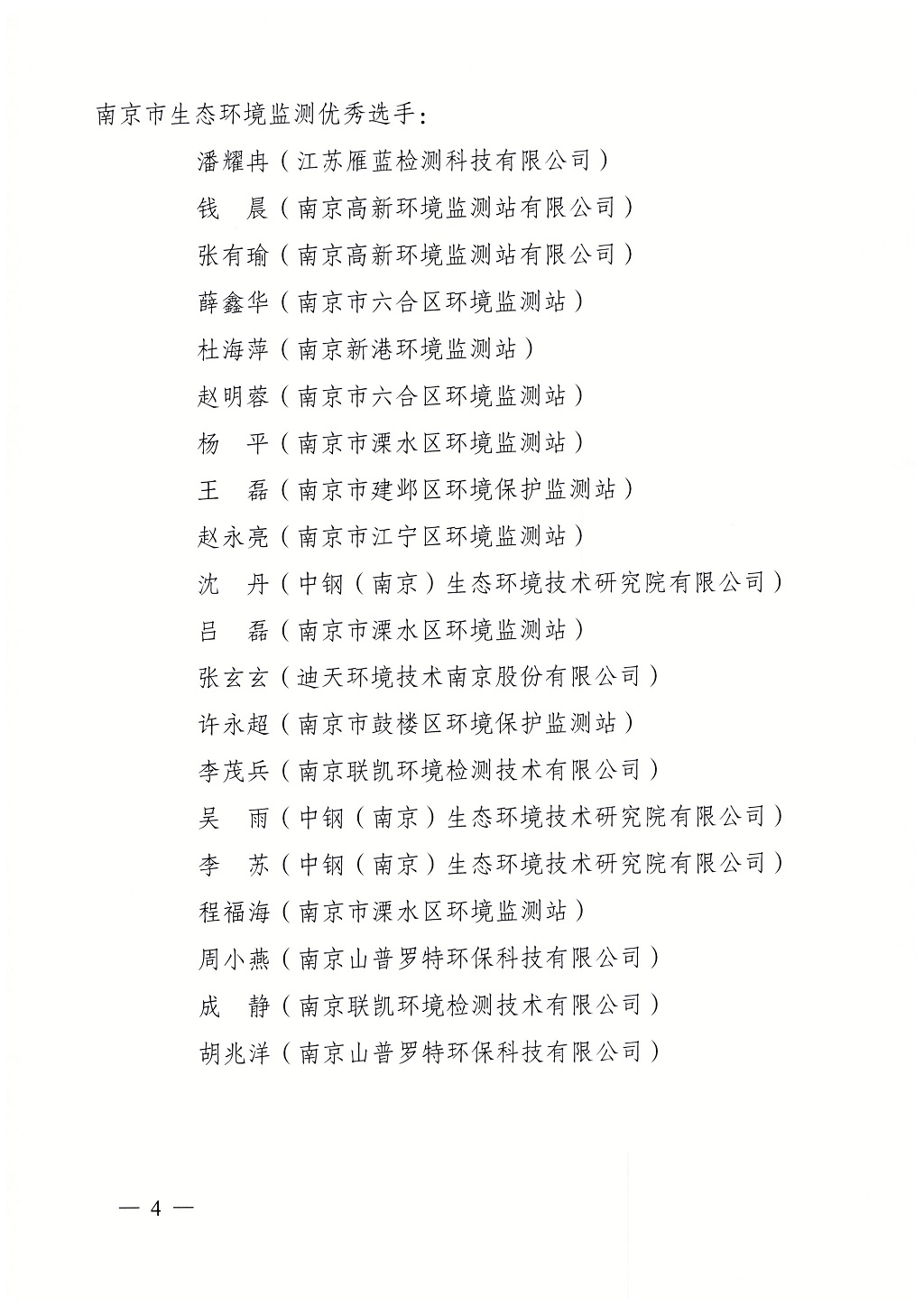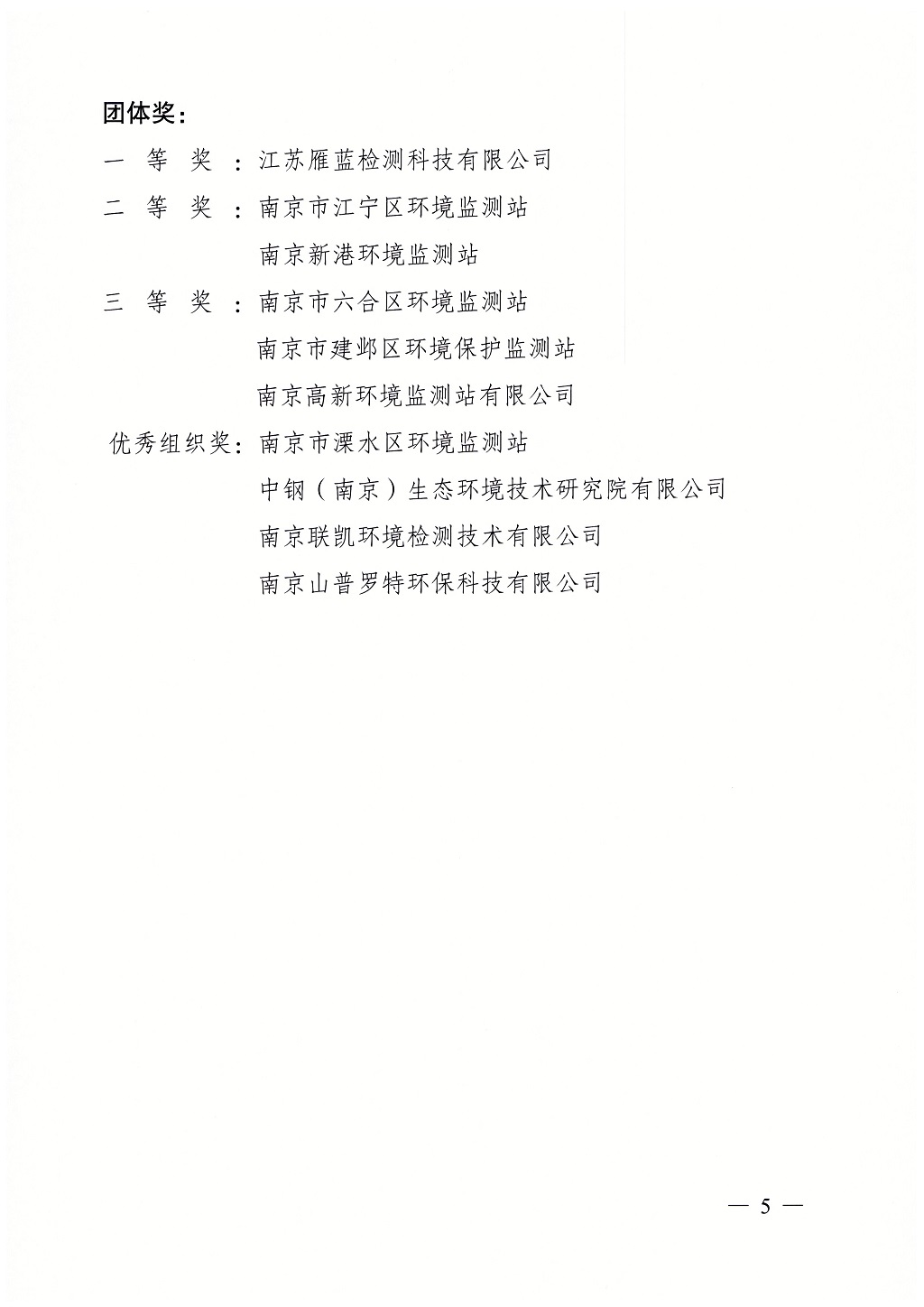 關于對2021年度南京市環境監測技能競賽結果的通報